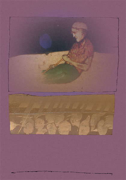prac. Artysta, skupiając się zrazu na obrazie w centrum, szuka później odpowiedniego komentarza dla