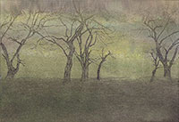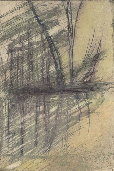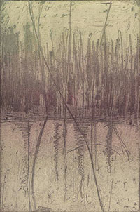W serii akwatint podobny motyw wycinek pejzażu uzyskuje