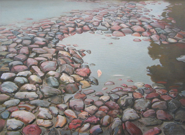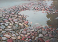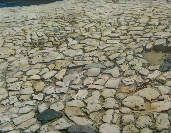 Dlatego refleksję artystyczną i filozoficzną Wojciecha Kotlewskiego należy traktować całościowo: malarstwo, w trosce o pełnię przekazu, wzbogacone zostaje o ślady materialne miejsc, o pamięć i wspomnienia jego oraz innych ludzi, o szkice, notatki i inskrypcje. Dopiero wtedy możliwe staje się obcowanie z całokształtem losów i historii, których tylko śladem są namalowane wizerunki murów, obrazy przemierzanych przez pokolenia dróg, przedstawienia leśnych ostępów. Można by w tym miejscu przypomnieć, że natura, otoczenie człowieka bywa tematem malarstwa bardzo często. O ile jednak zazwyczaj jej elementy ukazywane są w sztuce z perspektywy "ekologicznej", to w twórczości Wojciecha Kotlewskiego jest obecna przede wszystkim historia. Zbiór kamieni przywożonych z religijnych sanktuariów oraz, na przykład, ze stron rodzinnych, są oczywiście pamiątkami z pobytu w tych miejscach osób współczesnych, samego artysty albo jego przyjaciół, ale są także, na kolejnym poziomie, śladami życia i losów innych ludzi, nieraz z odległej przeszłości, śladami tych, co budowali romańskie świątynie, jak w Wąchocku (gdzie notabene zachował się na kamiennej ścianie gmerk średniowiecznego mistrza, jego wizytówka, świadectwo obecności), śladami tych, co wznosili zamki, jak w Mirowie na Jurze, tych, co kroczyli w procesjach po Trakcie Królewskim w Krakowie i wreszcie tych, co podążali w swą ostatnią podróż, wystukując chodakami rytm po bruku obozu w Oświęcimiu. Dziś stare bruki wymienia się na nowe, albo - choćby z oszczędności - przenosi nawierzchnię z innych miejsc, burząc kolej historii utrwalonej w kamieniu. Nawierzchnię ulicy Dolnej w Łodzi, tam, gdzie przebiegała granica Litzmanstadt Ghetto, zalewa się asfaltem. Dziedziniec jasnogórski w Częstochowie wyłożono, po usunięciu starej kostki, kamieniem z modernizowanej Alei... Lenina.