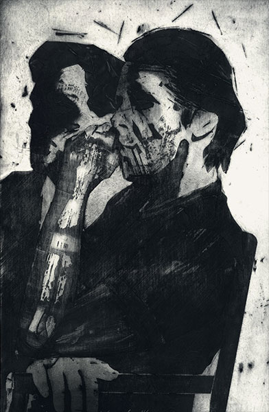 W kreowaniu świata przedstawionego ważną rolę odgrywają: kolagrafia i monotypia. Obie te techniki zawierają w sobie ryzyko i równocześnie walor przypadku. Użycie kolagrafii jako techniki niejednorodnej, wykorzystującej złożenie różnych materiałów, oraz monotypii, kojarzonej z jednorazowym, niepowtarzalnym drukiem, pozwala na uzyskanie szczególnej faktury obrazu.