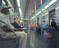 artysta wyznacza sylwetkom ludzi. Rzadko pojawiają się