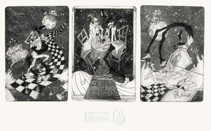 WYSTAWA POKONKURSOWAKONKURSU na małą formę graficzna dla studentów Akademii Sztuk Pięknych im. Wł. Strzemińskiego w Łodzi. październik-listopad 2010 nagroda główna![]() Po bezsennej nocy, mezzotinta, 21 x 14, 2010 Andrzej Lewandowski pasztetszluga@wp.pl V rok, Wydział Grafiki i Malarstwa Pracownia Technik Wklęsłodrukowych prof. K. Wawrzyniaka Pracownia Technik Litograficznych prof. W. Warzywody Prace zgłoszone do konkursu: 1. Po bezsennej nocy, mezzotinta, 21 x 14, 2010 2. Z.,litografia, 25 x 15, 2009 3. Bezsenność, litografia, 25,5 x 30, 2009 wyróżnienie![]() II, akwaforta, 11 x 25, 2009 Gabriela Cichowska gcichowska@gmail.com IV rok, Wydział Grafiki i Malarstwa Pracownia Technik Wklęsłodrukowych prof. K. Wawrzyniaka Prace zgłoszone do konkursu: 1. I, akwaforta, 14 x 20, 2009 2. II, akwaforta, 11 x 25, 2009 3. III, akwaforta, 17,5 x 16,5, 2009 ![]() Hairo, suchoryt, 21,5 x 10, 2010 Jacek Dziedziczak reklama_kolo@interia.pl III rok, studia niestacjonarne I stopnia Pracownia Technik Wklęsłodrukowych prof. K. Wawrzyniaka Praca zgłoszona do konkursu: 1. Hairo, suchoryt, 21,5 x 10, 2010 ![]() W lesie, litografia barwna, 10 x 20,7, 2010 Anna Gonera aniatytusek@wp.pl Pracownia Technik Litograficznych prof. W. Warzywody Prace zgłoszone do konkursu: 1. Pora dnia, litografia barwna, 20,5 x 12,5, 2010 2. W lesie, litografia barwna, 10 x 20,7, 2010 ![]() Wieża II, litografia,19,5 x 25, 2010 Aneta Kowalczyk aneta2000@vp.pl III rok, studia niestacjonarne I stopnia Pracownia Technik Litograficznych prof. W. Warzywody Pracownia Technik Wklęsłodrukowych prof. K. Wawrzyniaka Prace zgłoszone do konkursu: 1. Wieża II, litografia,19,5 x 25, 2010 2. Wrocławski zamek, litografia, 24,8 x 19,3, 2010 3. Oddalony, akwatinta, 21 x 29,7, 2010 ![]() Implikacje: Wschód, akwaforta, 12 x 17,5, 2010 Anna Sauter ania@sauter.com.pl IV rok, Wydział Grafiki i Malarstwa Pracownia Technik Wklęsłodrukowych prof. K. Wawrzyniaka Prace zgłoszone do konkursu: 1. Implikacje: Północ, akwaforta, 17,5 x 11, 2010 2. Implikacje: Południowy wschód 2, akwaforta, 17,5 x 12,5, 2010 3. Implikacje: Wschód, akwaforta, 12 x 17,5, 2010 ![]() Horyzont I, akwaforta, akwatinta, 30 x 20, 2010 Katarzyna Skośkiewicz hatmia@tlen.pl IV rok, Wydział Grafiki i Malarstwa Pracownia Technik Wklęsłodrukowych prof. K. Wawrzyniaka Prace zgłoszone do konkursu: 1. Horyzont I, akwaforta, akwatinta, 30 x 20, 2010 2. Horyzont II, akwaforta, akwatinta,30 x 20, 2010 3. Horyzont III, akwaforta, akwatinta, 29,5 x 20, 2010 Natalia Biegalska nat.23@tlen.pl III rok, Wydział Tkaniny i Ubioru Pracownia Grafiki Warsztatowej prof. T. Chojnackiego Prace zgłoszone do konkursu: 1. Bez tytułu, akwaforta, akwatinta, 6 x 4, 2009 2. Bez tytułu, akwaforta, akwatinta, 7 x 6,5, 2009 3. Bez tytułu, akwaforta, akwatinta, 6,3 x 4,5, 2009 ![]() Bez tytułu, akwaforta, akwatinta, 6 x 4, 2009 Eleonora Atanasova Atanasova edi_nashko@abv.bg Program Erasmus Pracownia Technik Wklęsłodrukowych prof. K. Wawrzyniaka Prace zgłoszone do konkursu: 1. A Story for Love, akwaforta, akwatinta, 3 grafiki 13 x 8,7 na papierze 25 x 35,5, 2010 2. Sin, akwaforta, akwatinta, 14,5 x 9,7, papier 25 x 18, 2010 3. Eros & Thanatos, akwaforta, akwatinta, 12,5 x 11,5, papier 25,5 x 17,5, 2010
