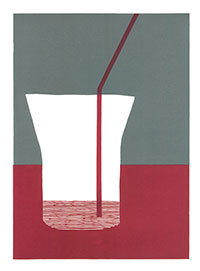 Obiekty, z lekka tylko modelowane, odcinają się od tła wyraźnie zaznaczonym konturem. I one, i granice okalających je płaszczyzn zostają rozmyte. Mimo to czujemy, jak zamknięte w obrębie podstawowych figur geometrycznych przedmioty oddziałują wzajemnie na siebie swoją formą. Powinniśmy w tym miejscu zaznaczyć, że pomimo wspólnoty doświadczeń, które płyną z obszaru obu dyscyplin, na poziomie koloru dzieła bardzo często wyrastają – w sensie przenośnym i dosłownym – z różnego podglebia: w malarstwie wydobywanie koloru wspierane jest przez użycie ciemnych podkładów, podczas gdy grafika zazwyczaj wychodzi z bieli. Tym bardziej intrygujące są jedne z ostatnich prac graficznych Joanny Paljochy, które powstają dzięki odbijaniu tymi samymi kolorami i na bieli, i na czerni.