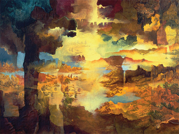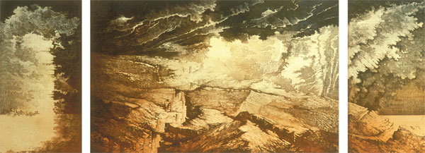 Twórca kształtuje swoje plastyczne krajobrazy z przestworzy i z ziemi. Urwiska, zwaliska spiętrzonych skał, gęstwa zaborczej roślinności, kłębiące się nad wszystkim niebo - elementy, którymi twórca operuje od lat. Ale na każdym nowym etapie tworzenia składniki poetyckiego świata jego wyobraźni tworzą kolejne pasjonujące konfiguracje, utwierdzając nas w przekonaniu o złożoności i nieskończoności natury. Wydawałoby się, że mamy do czynienia z czystym panteizmem przyrody, że jest to jedynie hołd dla sił natury i jej symboli, że twórczość ta wynika z bezinteresownej kontemplacji świata i piękna całości istnienia.