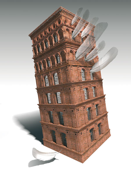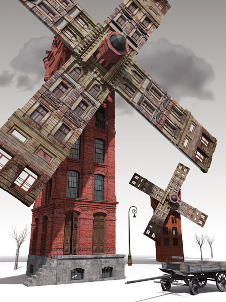 Niewiarygodnie prawdziwe, wysnute z wyobraźni budowle stanowią - jak rozbudowane gołębniki w Snach ptasznika - siedlisko dla nieustannie przemijających człowieczych egzystencji. W murach o różnych tonach szarości niespokojne sny zaledwie łagodzą samotność, ściany i rusztowania kryją bolesne, gorzkie tajemnice. Kontekst, który stwarza artysta dla rozważań o ludzkiej kondycji pozwala na pojawienie się jeszcze jednego, nowego metaforycznego motywu. Istotom ukrytym w narastających kubicznych formach wolno przecież mieć nadzieję i marzyć! Wylatują więc na wolność jak ptaki. Uwalniają swoje skryte pragnienia, mierzą siły na nieśmiałe dotąd aspiracje, pokonują lęki.