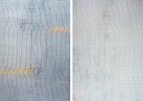Artysta zestawia ze sobą formy płaskie i przestrzenne