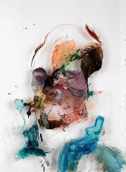 Materia, która zazwyczaj definiuje istnienie składników rzeczywistości, tu jako fizyczny składnik procesu twórczego, namacalna, mocno eksponowana warstwa medium przekształca się w obraz w dynamicznym procesie kreacji – staje się istotą tej przestrzeni.
