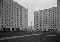 Wznoszące się do góry kolejne kondygnacje bloków wypełnione są