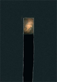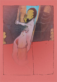 W nawarstwionej fakturze obrazów pojawiają się niedopowiedziane postacie, czasem tylko ich głowy