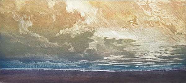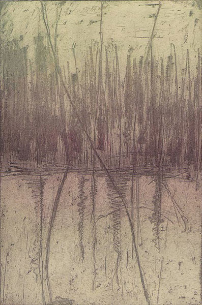 W serii akwatint podobny motyw wycinek pejzażu uzyskuje