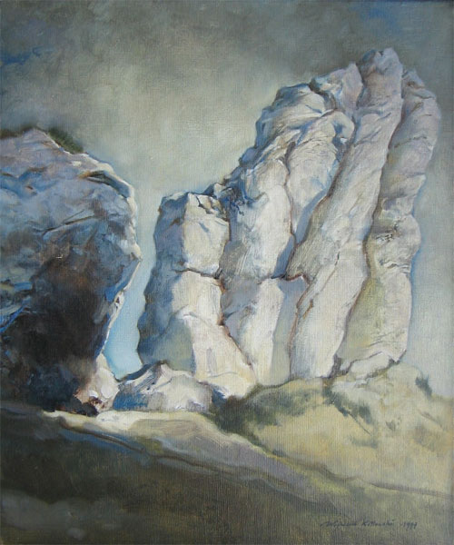 Przykłady paradoksów historii. Gdyby kamienie mogły mówić, pewnie potrafiłyby także i śmiać się, i płakać. Artystę boli także usuwanie wielowiekowych nalotów pokrywających zabytkowe mury, pozbawianie ich oryginalnych historycznych naskórków. Piaskowanie kamiennych elewacji katedr to nieodwracalne niszczenie warstw zawierających pamięć o przeszłości, skuteczne jak zmywanie emulsji z kliszy fotograficznej. Kotlewskiego interesują kamienie, przede wszystkim te zniszczone i wiekowe, noszące już ślady ludzkiego trudu, emocji, nadziei i cierpienia (jak w epitafium dedykowanym zmarłym na cholerę), bruki schodzone przez królewskie orszaki lub ściany dotykane w ciągu stuleci przez tysiące i miliony zwykłych ludzi. Kamienie są dla artysty jak niemi świadkowie historycznych wydarzeń i ludzkich przeżyć. Różnorodność kamiennych odłamków, i tych rzeczywistych, podniesionych z drogi, jak i tych namalowanych, jest odbiciem różnorodności dziejów i wielości tradycji. Kotlewskiego zajmują też i inne naturalne konteksty. Utrwalony na obrazie niepozorny fragment pejzażu to wspomnienie o żołnierzach AK, portret ich rzeczywistej leśnej bazy-kryjówki, na nieszczęście nie dosyć skutecznej. Rozpoznany dzisiaj, otoczony wspomnieniami tych, co jeszcze pamiętają, nabrzmiewa na nowo ludzkimi losami.