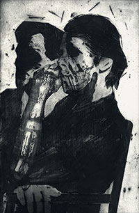 Celowo przywołaliśmy tu terminologię dotyczącą mediów filmu i fotografii. Ich wpływ na nasze rozpoznanie i ocenę rzeczywistości jest dziś przecież ogromny. To jedna z decydujących cech współczesności. W natłoku sensacyjnych informacji giną gdzieś te ciche, skrywane, jakby wstydliwe i nieatrakcyjne medialnie problemy. Wizja kondycji współczesnego człowieka w pracach Kwiatkowskiego jest szorstka, raczej ponura. W grafice artysta korzysta z atrybutów konwencji „noir”. Tak jak w planie emocjonalnym przeważa w niej - w większości – atmosfera przygnębienia, mimiczna obojętność, bezruch lub cisza, tak w planie plastycznym, obejmującym barwę – dominuje czerń i biel oraz gama szarości.