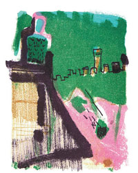 Impresje inspirowane miejskimi pejzażami Magrebu oddają atmosferę tej przestrzeni i tej kultury w kolorze, w gęstości i temperaturze atmosfery, w mirażowatości chwiejnego obrazu. Przetworzone widoki Urbino czy Łodzi zwracają uwagę na inne cechy tych przestrzeni, wyławiają z nich tajemnicze, ukazane w monochromie zaułki albo ostre połacie dachów, podkreślają czerwień ceglanych murów, wplatają w pejzaż znaczące akcenty kulturowe, jak choćby rzędy pochylonych macew.