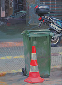 nie samego przedmiotu, ale jego zdjęcia. Maluje fotografię