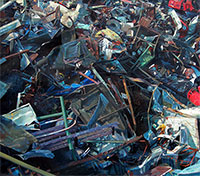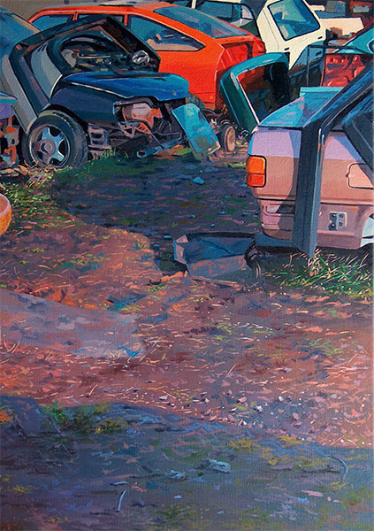 śmietniki, pogięte, pogruchotane karoserie limuzyn,
