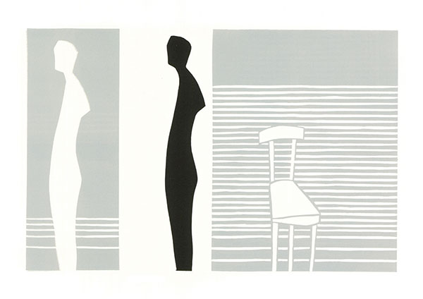 Znów uderza nas w nich szczególna „banalność” opowiadanej historii, wyrażająca się poprzez niepełność i przeciętność zarysowanych sytuacji, ludzi i przedmiotów, pozorny brak skrytych za nimi emocji. Uproszczone sylwetki postaci oddane zostają jedynie za pomocą linii, konturu, bądź płaszczyzn pozbawionych identyfikujących szczegółów. Obraz oddziałuje na nas podobnie jak w przypadku pejzaży – liczy się synteza wyjściowej sytuacji, jej uproszczenie, atmosfera i nastrój. Postaci przemawiają do nas pozami, w jakich zastygły, sugestywnymi gestami (jak choćby w graficznych Konstelacjach czy Odbiciach). Obiekty często wyeksponowane zostają na neutralnym podłożu. Mocno wybijają się z tła, silnie manifestują swoją obecność i niesione znaczenia.