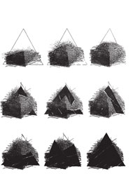 Wcześniejszą zapowiedzią tego typu prac był cykl "Zgodnie z naturą rzeczy", który powstał w połowie lat dziewięćdziesiątych; w obrębie tego cyklu pojawiają się prace, w których akcja wizualna sprowadzona jest do relacji kilku prostych elementów - znaków, zawierających jakby jeszcze odległe echo ikoniczności. Znaki te, w pracach z lat ostatnich, bardziej przynależą do uniwersalnego, abstrakcyjnego pisma niż do sfery mającej odniesienia ikoniczne. Podobna prostota, choć posiadająca całkowicie odmienny wyraz artystyczny, bo wyrażona zupełnie odmiennymi środkami, pojawia się w wielkim cyklu rysunków "Obszar narysowany". Obszar narysowany to obszar wypełniony niezwykłą wizualnością, będącą wyrazem bezpośredniego przekazu wrażliwości, jakby estetyczną sublimacją stanów psychicznych. W rysunkach z tego cyklu nie ma żadnej manipulacji, chęci konstruowania, warsztatowości - jest to przebywanie w obszarze ciszy, w materii szarej, pozbawionej właściwości, docieranie do nieuchwytnych obszarów wizualnej wrażliwości, kontemplacja czystej wizualności. W sensie technicznym ta próba bezinteresownego poszerzenia obszaru doświadczenia wizualnego jest doświadczeniem możliwych wzajemnych relacji węgla rysunkowego i białej farby.