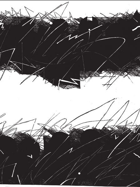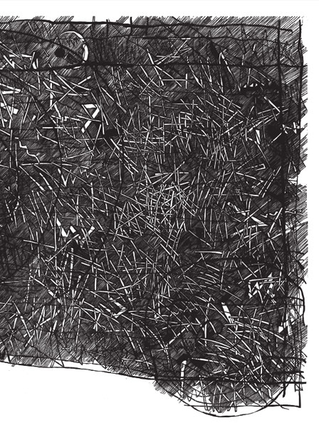 Podobnie jest z rysunkiem Wawrzyniaka. Łączy elementarny gest z refleksyjnością, który wyzwala emocje. Rysunek, jako spontaniczna reakcja na bodźce zewnętrzne, jest najbardziej bezpośrednią i szczerą notacją myśli, bez obciążenia warsztatem realizacyjnym, jak to bywa w przypadku grafiki. Prostymi środkami wyraża obszar ciszy, swoisty dialog ze światem.