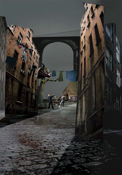 w sposób bezpośredni. Jak w kulisowych dekoracjach, pełnych zastawek