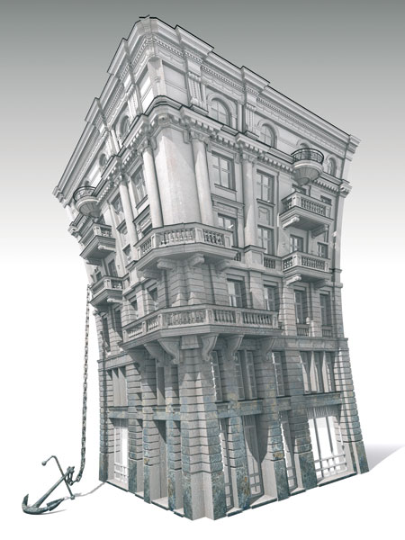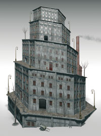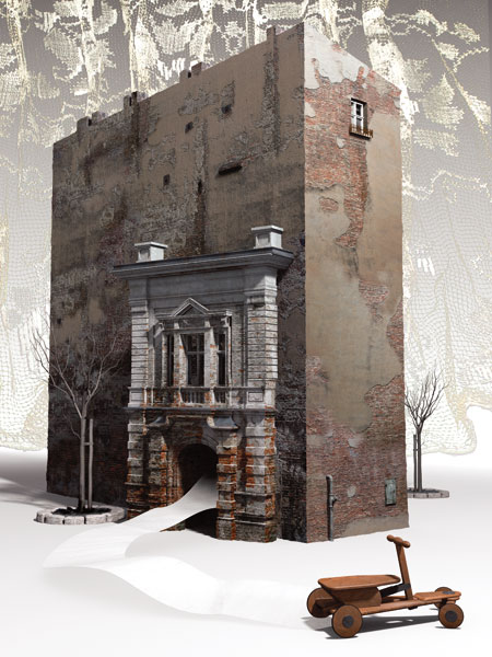 Niewiarygodnie prawdziwe, wysnute z wyobraźni budowle stanowią - jak rozbudowane gołębniki w Snach ptasznika - siedlisko dla nieustannie przemijających człowieczych egzystencji. W murach o różnych tonach szarości niespokojne sny zaledwie łagodzą samotność, ściany i rusztowania kryją bolesne, gorzkie tajemnice. Kontekst, który stwarza artysta dla rozważań o ludzkiej kondycji pozwala na pojawienie się jeszcze jednego, nowego metaforycznego motywu. Istotom ukrytym w narastających kubicznych formach wolno przecież mieć nadzieję i marzyć! Wylatują więc na wolność jak ptaki. Uwalniają swoje skryte pragnienia, mierzą siły na nieśmiałe dotąd aspiracje, pokonują lęki.