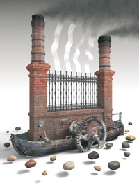 Obraz miasta utrwalony w Starej Łodzi, w Ziemi Obiecanej to wizja organizmu miejskiego w stanie przedzawałowym. Jego mechaniczne, sterane czasem serce nie ma już siły pracować. Miasto zamknięto na kłódkę, dryfuje jak papierowa łódeczka po wodach rynsztoka.