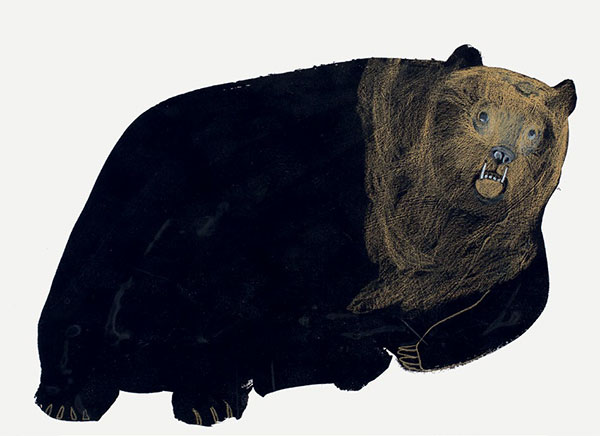 Użycie techniki monotypii, zastosowanie kolażu, wycinanek, ograniczenie palety barwnej powodują, iż odnosimy wrażenie, że stoimy przed