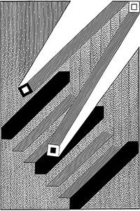 wyznaczane szrafowaniami wypełniającymi całą płaszczyznę obrazu. Pojawiły