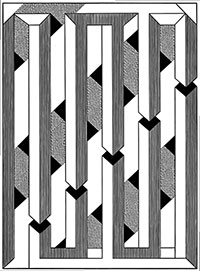 zwróconych w różnych kierunkach linii, zamkniętych w granicach czarnych