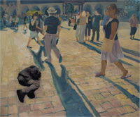dobrego nastroju, chłodne błękity znamionują obojętność anonimowego tłumu. Autorka