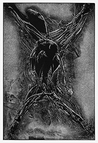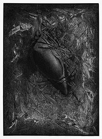 Oniryczna rzeczywistość oglądanych linorytów pociąga i nurtuje. Twórczość